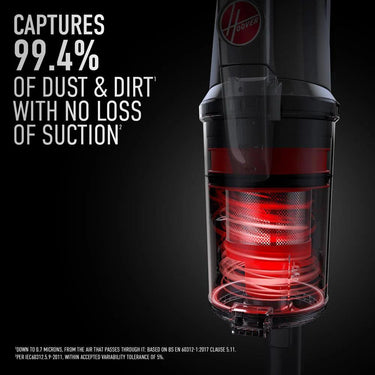 - Dual Cyclonic Separation System captures and contains 99.4% of dust & particles