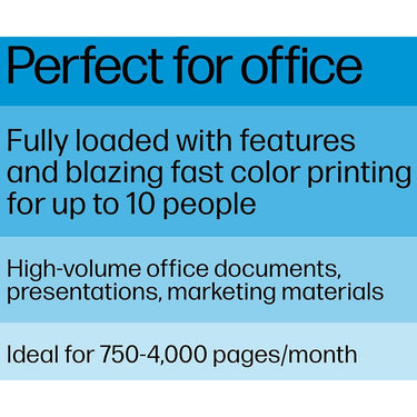 Support your business workteam with this compact, high-performing, color printer, ideal for up to 10 users. Step up your workflow with blazing fast speed to meet high-demand environments.
