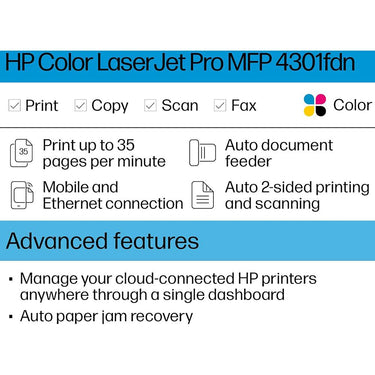 - HP Color LaserJet Pro MFP 4301fdn Printer (4RA81F)