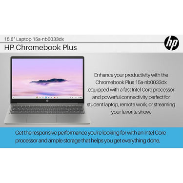 The HP Refurbished Chromebook plus features a 15.6-inch Full HD IPS large screen display; offering vibrant colors and sharp details. Whether you're using this as school laptop; streaming videos; working on documents; or browsing the web; the display ensures an immersive viewing experience.