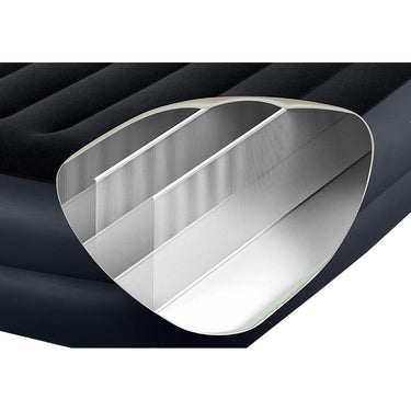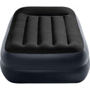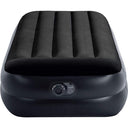 Part of the new Dura-Beam Standard Series of airbeds, the Pillow Rest Raised Airbed now features an interior made with Intex innovative fiber-tech construction which is comprised of thousands of high-strength polyester fibers that provide enhanced comfort, stability and support. With its luxuriously soft, flocked top, this twin airbed is an amazing solution for overnight guests. The built-in electric pump plugs right into your standard wall outlet and inflates the bed in about 3 minutes so there is no need to rummage through the garage for your old electric pump or fuss with tiring hand or foot pumps. Plus, you don't have to break out extra pillows since it features a built-in pillow rest as well.