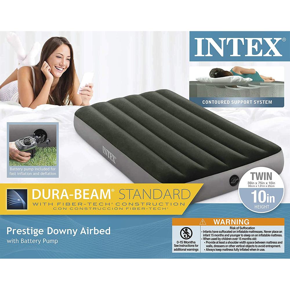 Intex 10" Twin DuraBeam Standard Prestige Downy Airbed w/ Battery Pump - 64777E