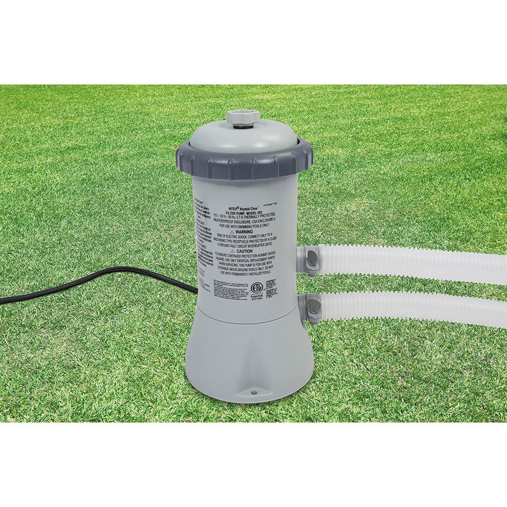 Make a splash all summer long with the Intex® Easy Set® inflatable pool that is easy to set up and store. This pool will make your backyard the place to be all summer as your family can relax and play. Hydro Aeration® Technology is incorporated to the cartridge filter pump providing improved circulation and filtration, improved water clarity, and increased negative ions at the water surface. A 110-120 volt Krystal Clear™ cartridge filter pump is included and is very easy to install - just hook up the hoses and enjoy clean refreshing water. Pump flow rate: 530 gallons, System flow rate: 475 gallons. Ready for water in 10 minutes, simply spread out on level ground, inflate the top ring, fill the pool with water, and enjoy the fun.