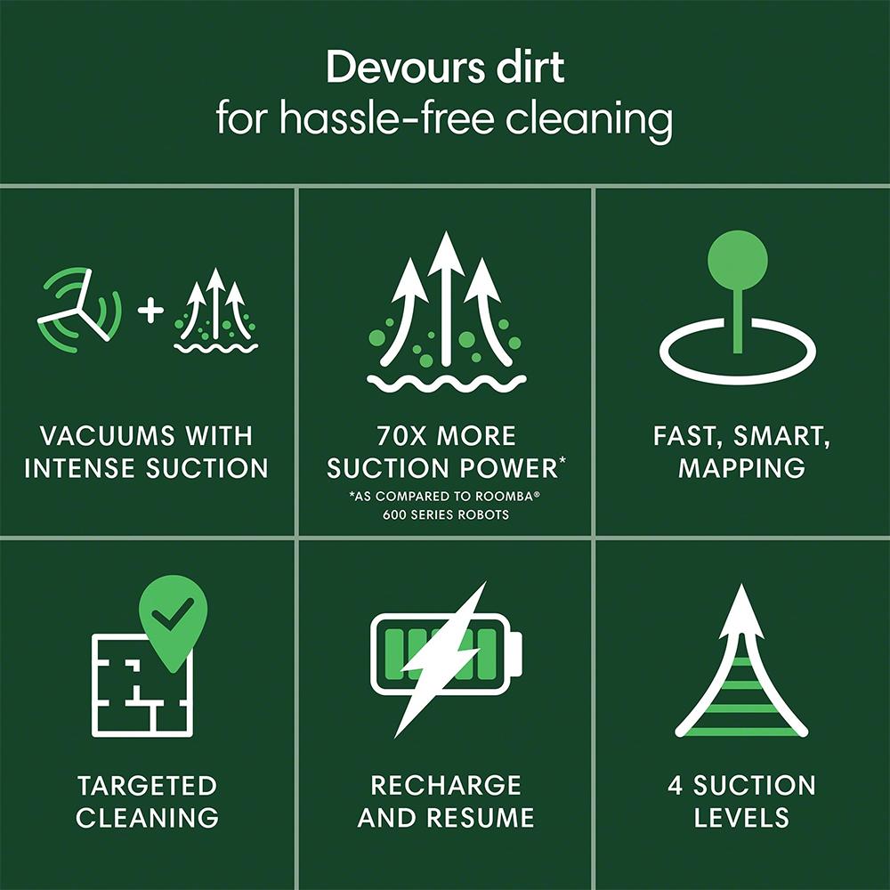 Tackle any and every mess—and leave the debris to us. The Roomba® 105 Vac Robot is made for everyday cleaning, with 70X more suction, better navigation. Enjoy up to 75 days of hassle-free, autonomous cleaning.