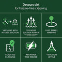 3-Stage Cleaning includes 70X more power-lifting suction, a Multi-Surface bristle brush, and Edge-Sweeping brush to devour dirt and dust bunnies and leave floors barefoot clean.