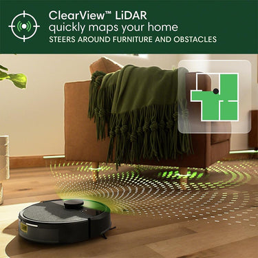 ClearView™ LiDAR quickly maps your home, avoids obstacles and cleans in neat rows, even in the dark.