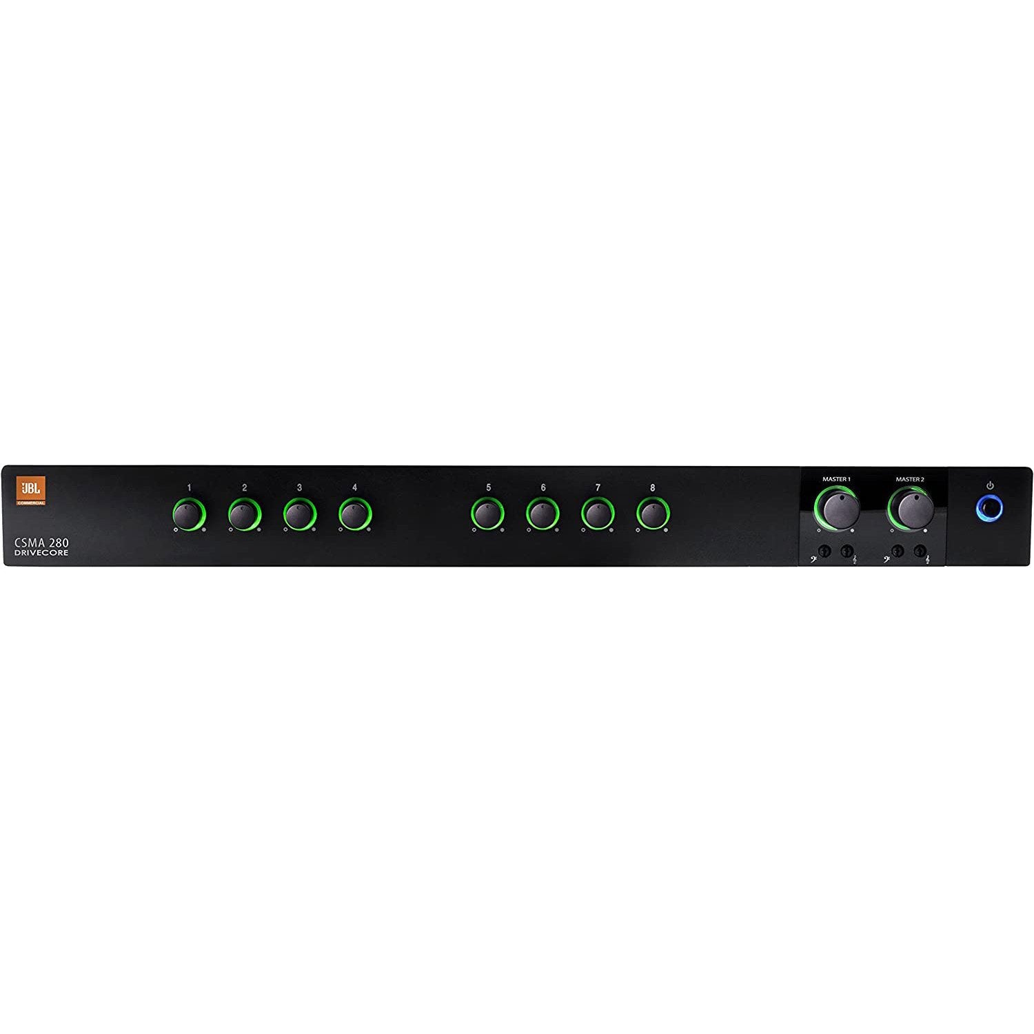 The JBL® CSMA series of Mixer-Amplifiers are a professional tool with a sleek industrial look that is designed and built for commercial sound applications. Utilizing Crown’s DriveCore technology enables significantly reduced size and weight – all mixer/amps are highly efficient, fanless and just 1U rack space high. There are both single channel and two channel models with four or eight mixer channels, respectively.