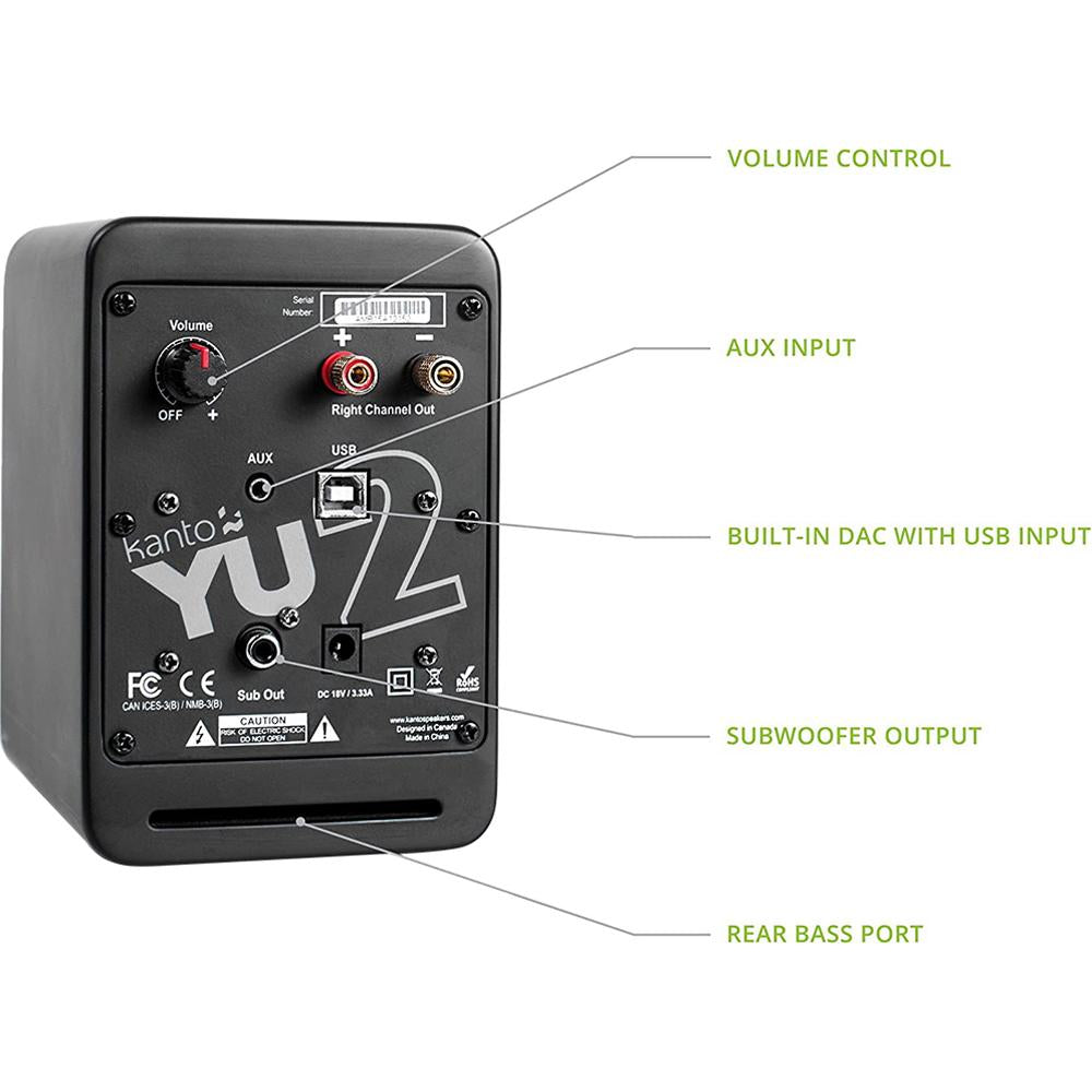 Kanto YU2MB Powered Desktop Speakers Onyx - Matte Black/Noir - Open Box