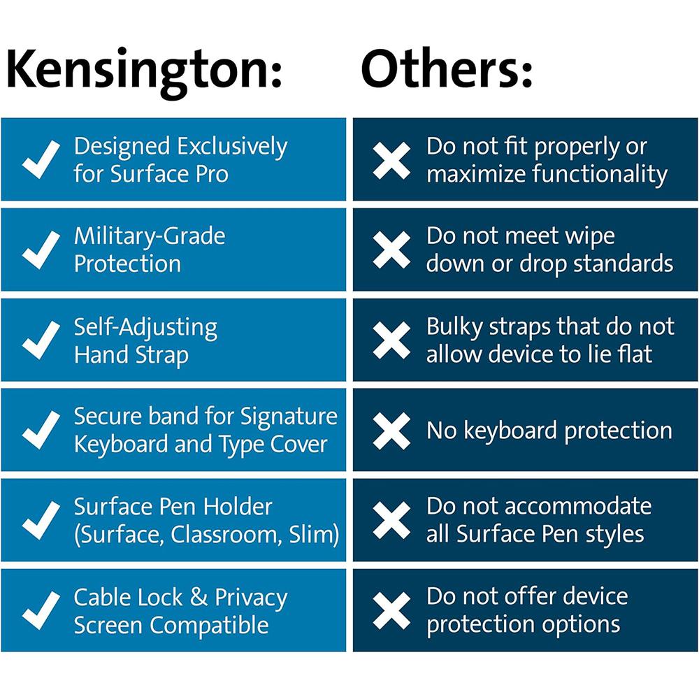- Can be secured with a Kensington lock for Surface Pro
