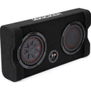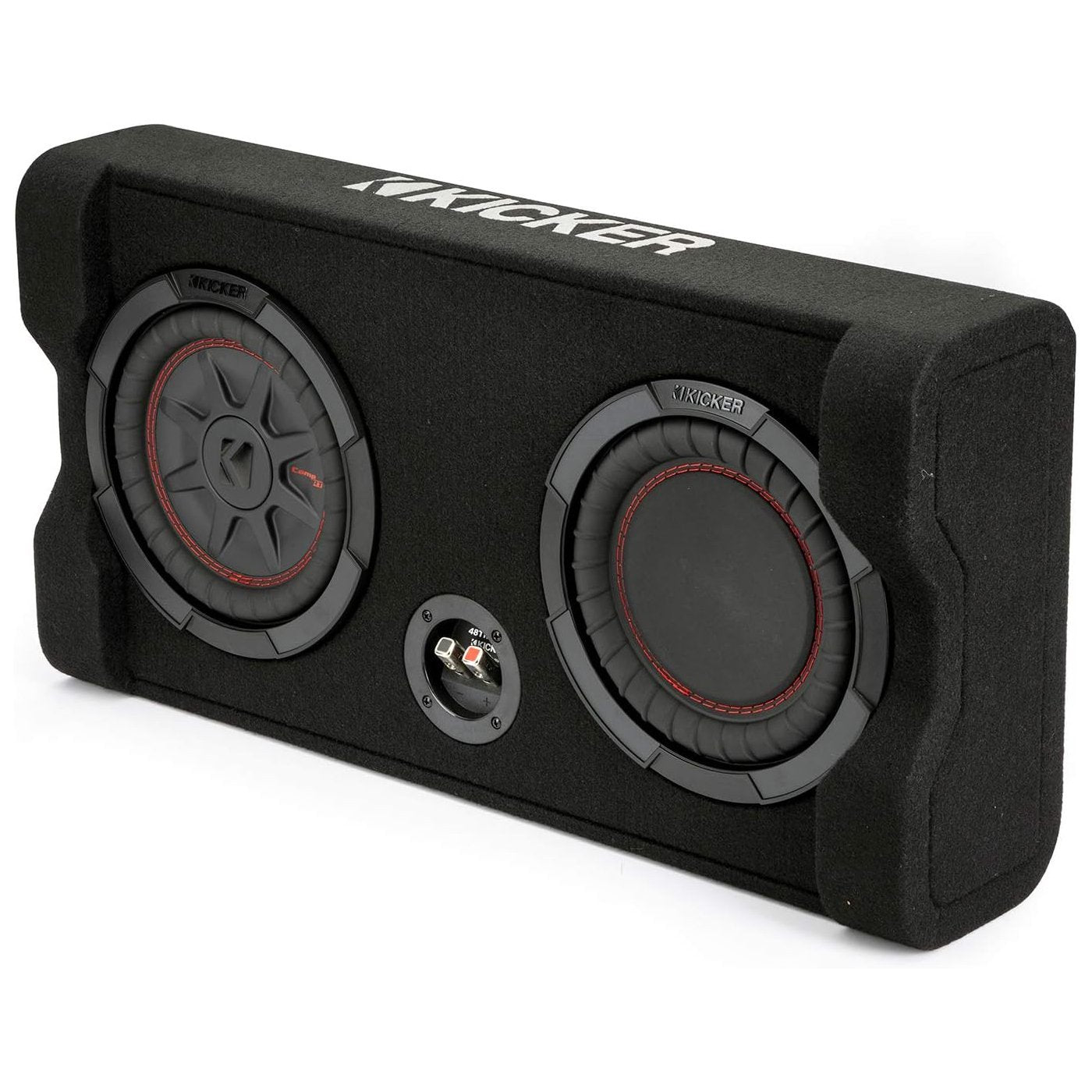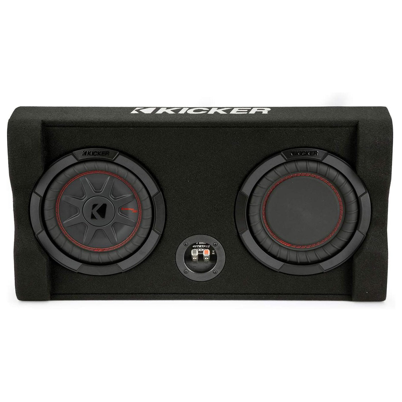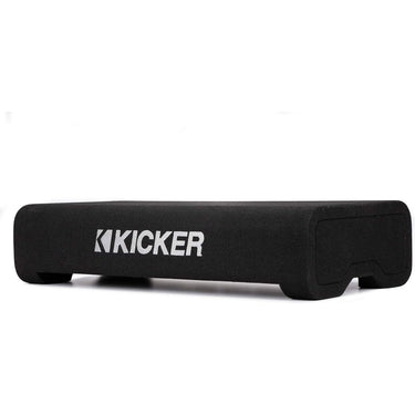 Kicker's TRTP82 loaded enclosure puts a low-profile CompRT 8" subwoofer and a 8" passive driver in a downward-firing box that brings Kicker bass power to the crowded spaces of today's cars and trucks. The rugged sealed box was designed specifically for the subwoofer, so you can count on getting maximum performance, whatever you listen to. The second sub (called a "passive radiator") reacts to the air pressure produced by the active sub, reinforcing the low end without the noise of a ported enclosure.