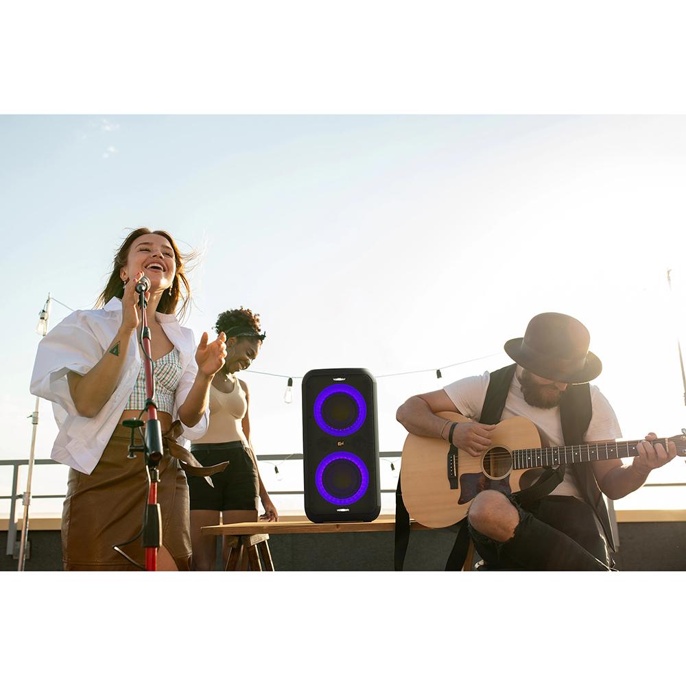 The Gig XXL is lit…no really, it is. Enjoy multiple color modes and settings that match your party’s vibe with two multi-color light rings that dance to the beat plus powerful strobes for the ultimate festival feel wherever you take it.