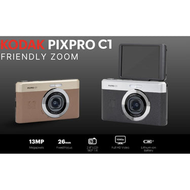 Step into the world of timeless memories with the new KODAK PIXPRO C1 digital camera - where vintage style meets modern tech. Designed with trendsetters of all ages in mind; this camera blends timeless nostalgia with convenience and portability. KODAK PIXPRO Digital Cameras - Tell your story.