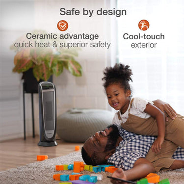 - Safe ceramic comfort -self-regulating element; automatic overheat protection and cool-touch exterior