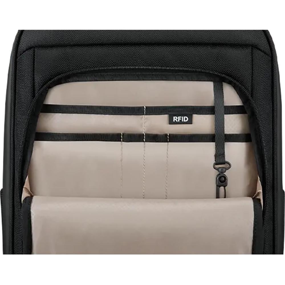 - Special/Added Features: A RFID pocket; Charge opening reserved on top right corner inside main compartment; A slip pocket inside PC compartment for smaller device size up to 14"; 70% OBP Plastic Bag