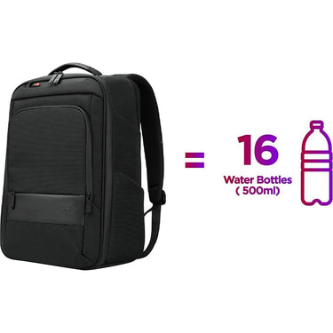 ThinkPad Professional 16" Backpack Gen 2 is crafted using recycled PET; exterior made with 70% recycled PET; equivalent to 16 500ml plastic water bottles A perfect fusion of creativity and technology; designed with nature in mind. Based on assumption that a typical 500ml plastic water bottle is comprised of approximately 19 grams of plastic.