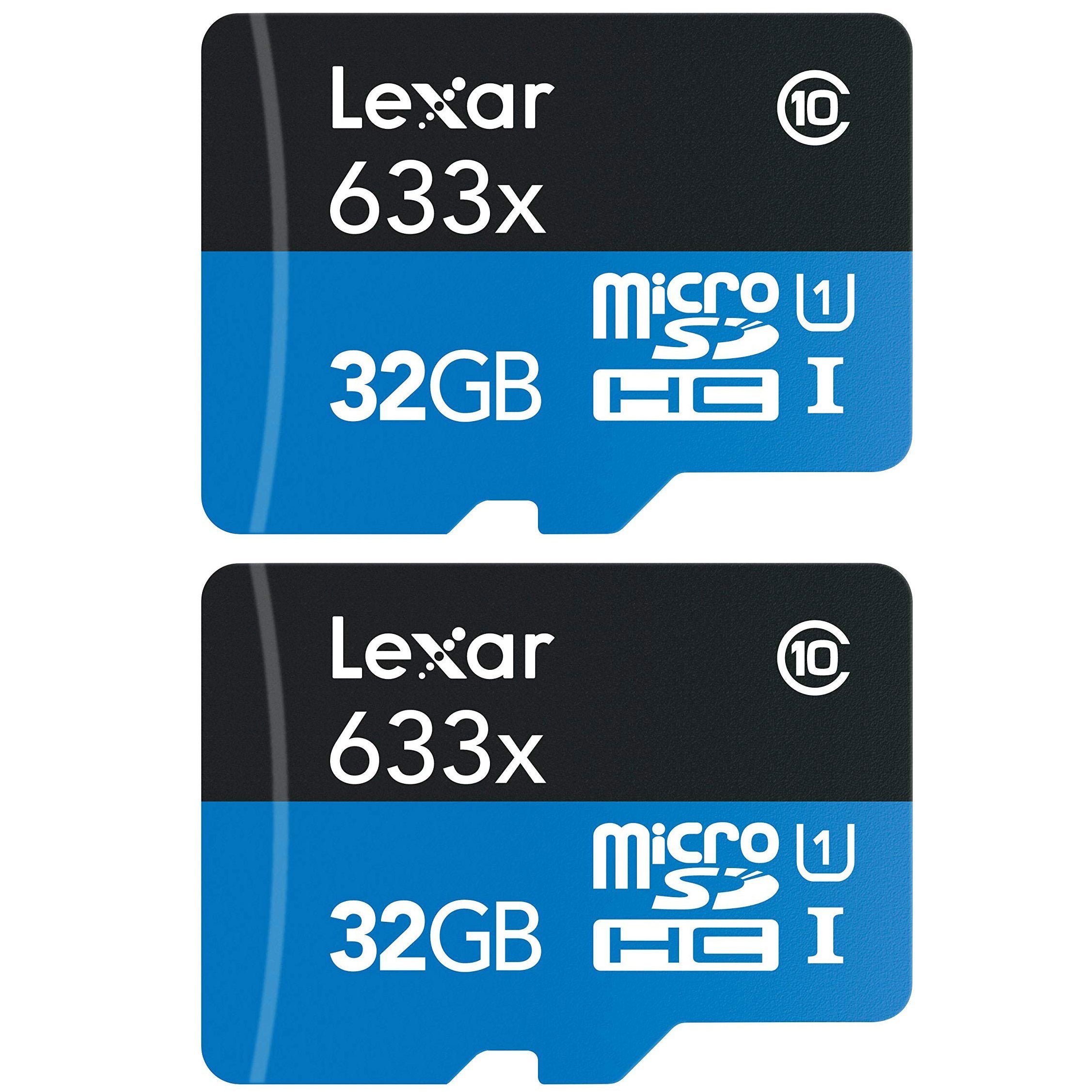 - Pack of 2 Lexar High-Performance 633x 32GB MicroSDHC UHS-I Cards with SD Adapter (LSDMI32GBBNL633A)