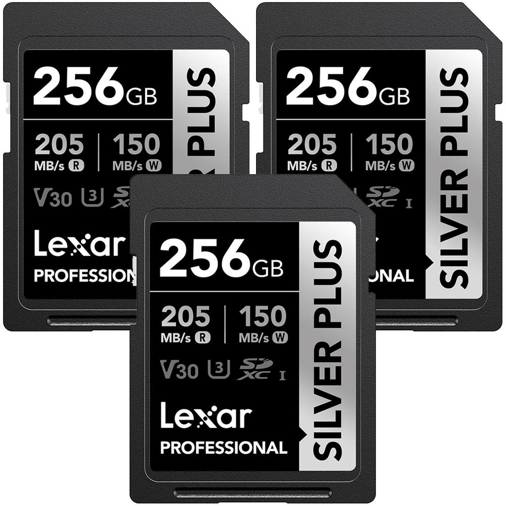 - 3x Lexar 256GB Professional SILVER PLUS UHS-I SDXC Memory Card