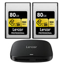 Lexar 80GB CFexpress Type A Pro Gold R900/W800 Memory Card (2-Pack) + Card Reader