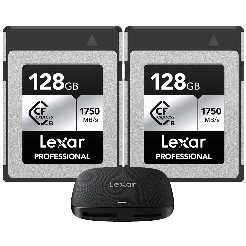 Lexar CFexpress Type B SILVER Series Memory Card 128GB 2 Pack with Card Reader