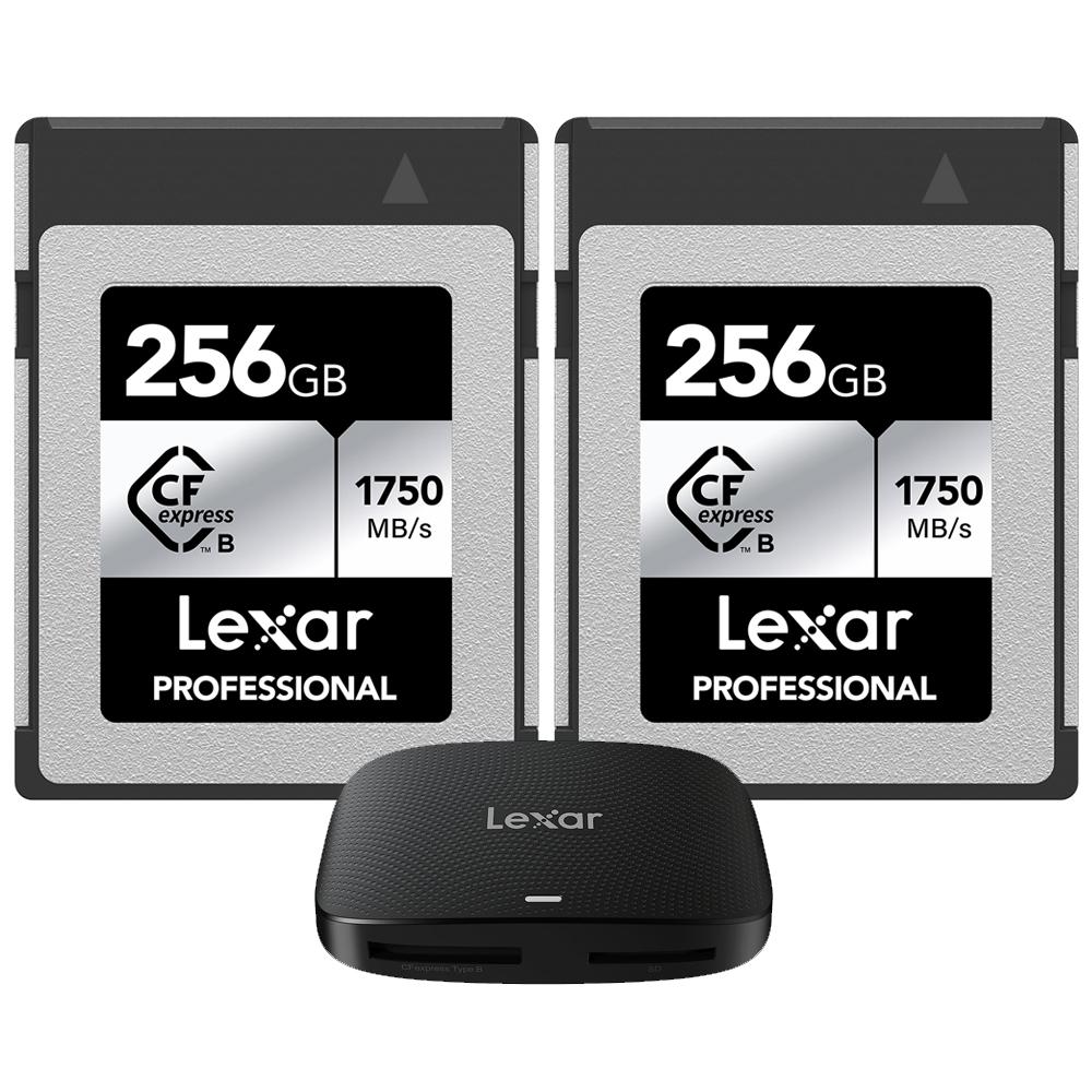 Lexar CFexpress Type B SILVER Series Memory Card 256GB 2 Pack with Card Reader