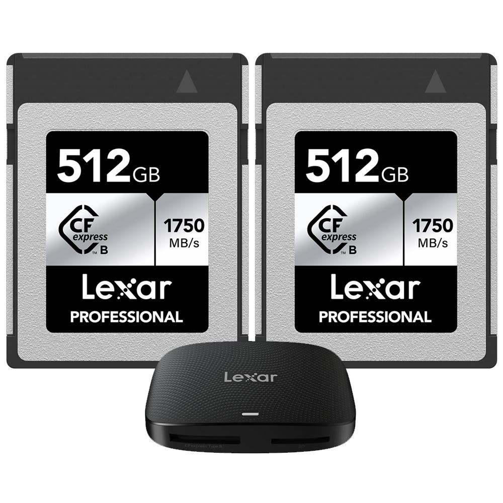 Lexar CFexpress Type B SILVER Series Memory Card 512GB 2 Pack with Card Reader