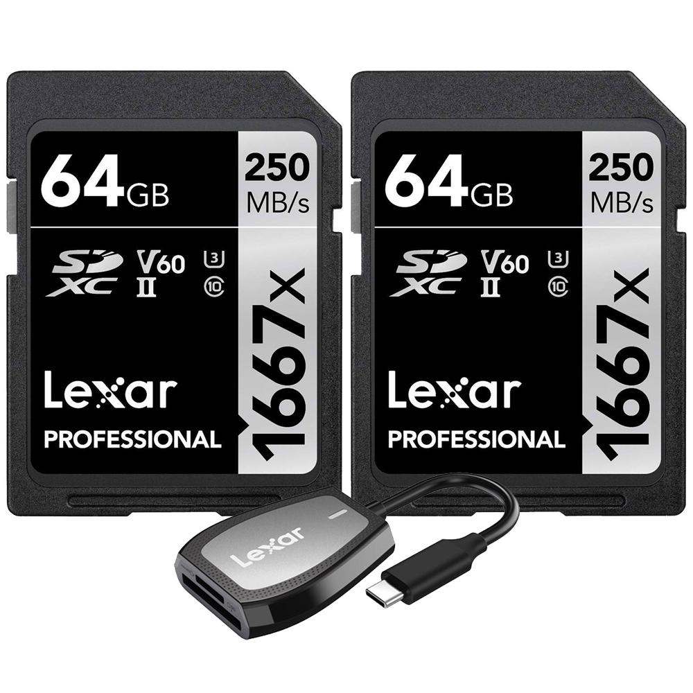 Lexar Professional 1667x 64GB SDXC UHS-II Memory Card 2-Pack + USB-C Dual-Slot Reader