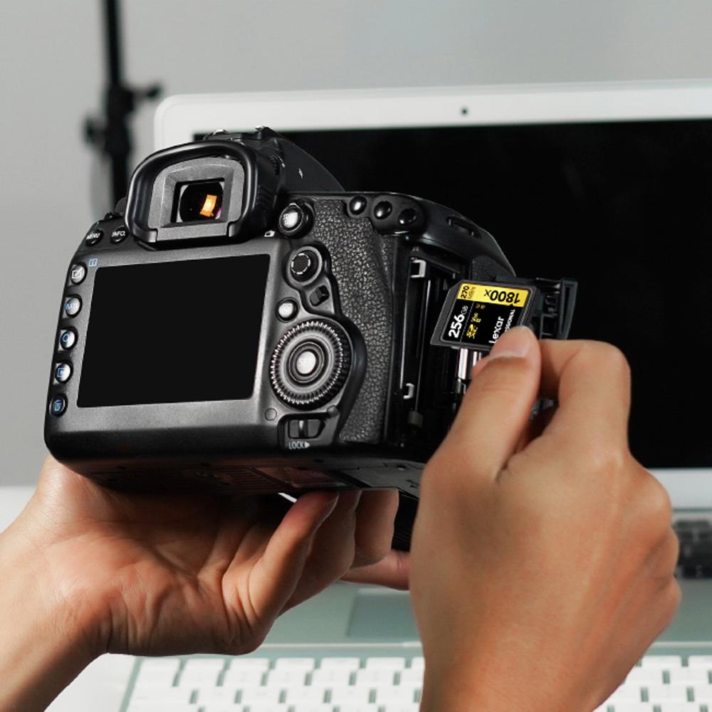 These cards provide the performance you need to capture and store valuable data in a variety of elements. Lexar® Professional 1800x SDXC™ UHS-II Card is water-proof, temperature-proof, shockproof, vibration-proof, and X-ray-proof.