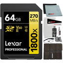 Lexar Professional 1800x SDXC UHS-II Card GOLD Series 64GB with Reader Bundle