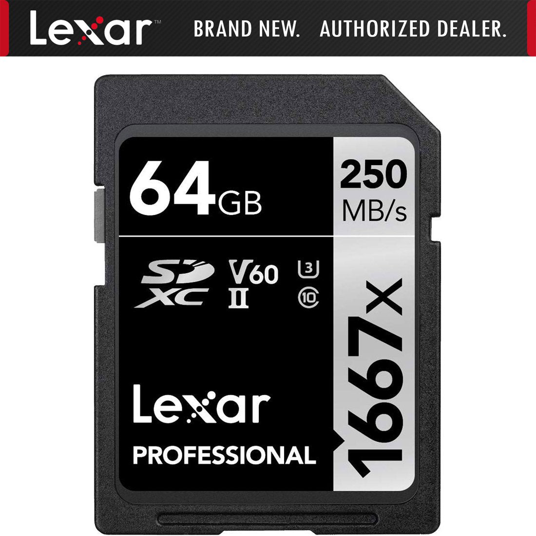 - Lexar Professional 1667x 64GB SDXC UHS-II Memory Card, 250MB/s Read, 120MB/s Write