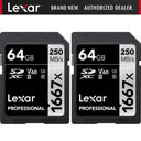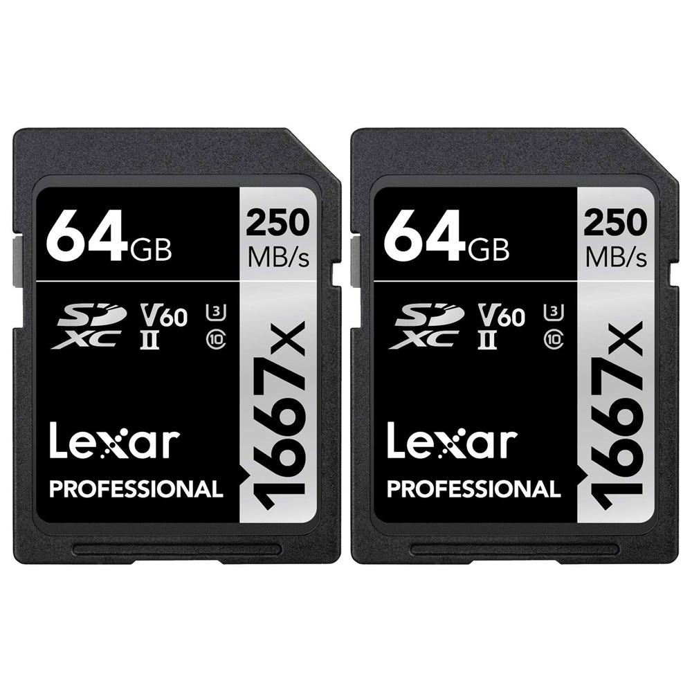 2x Lexar Professional SDHC / SDXC 1667x UHS-II 64GB Memory Card