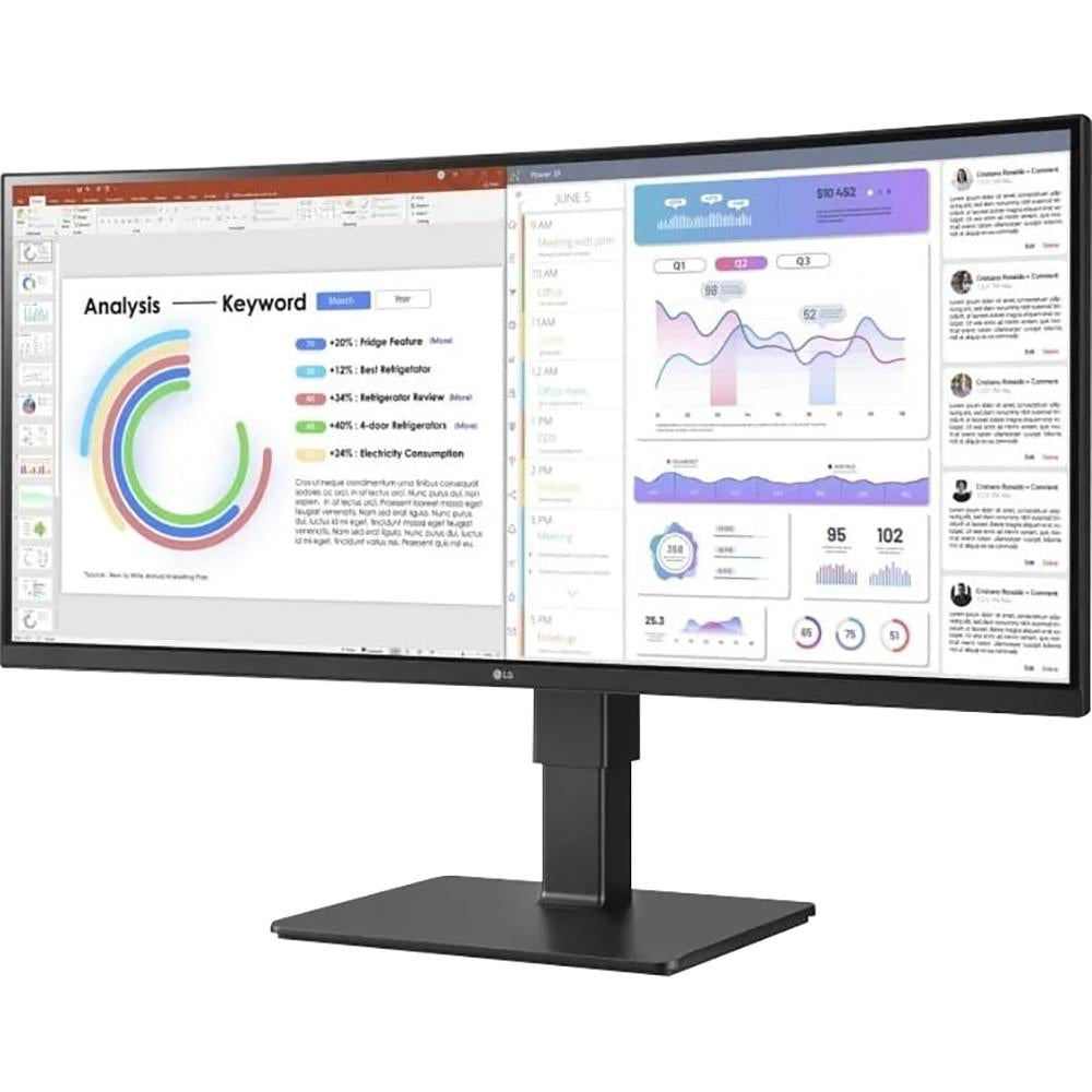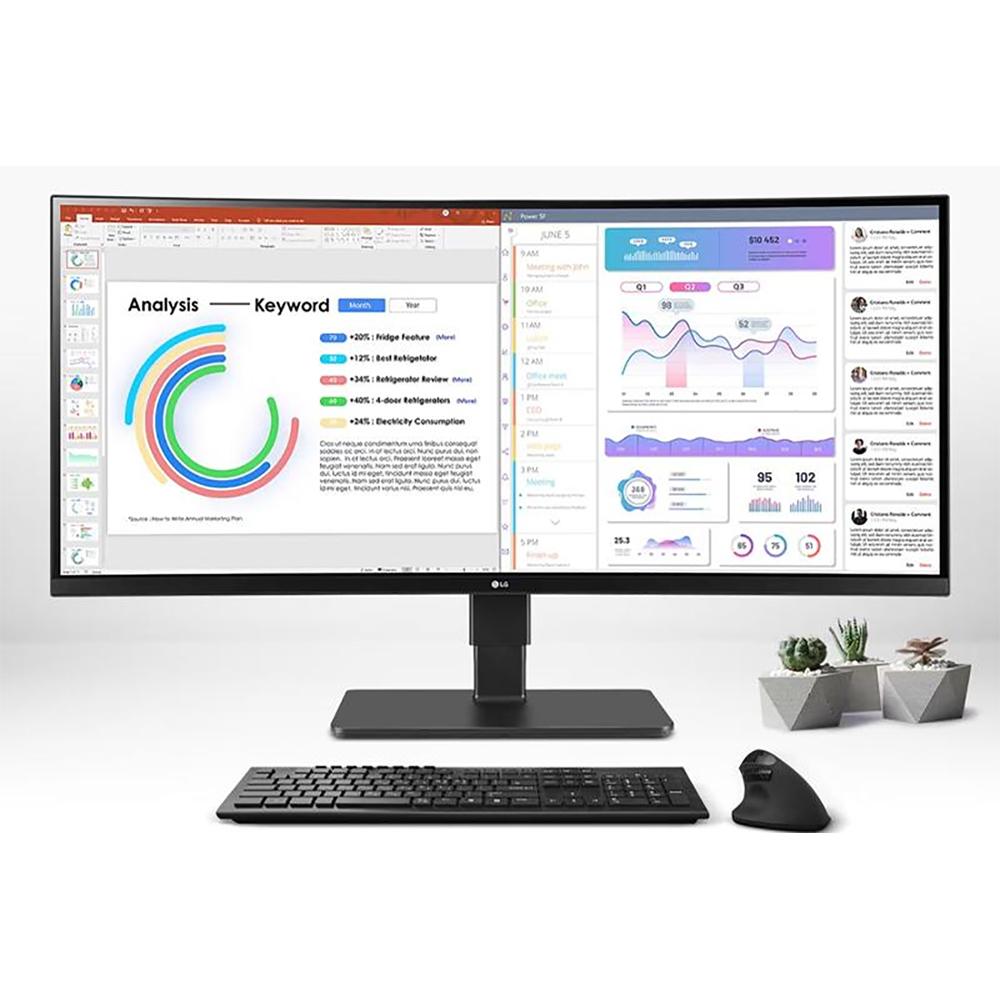 LG WQHD (3440x1440) Monitor with IPS technology delivers crips images & dazzling color while providing a large work space for multi-tasking.
