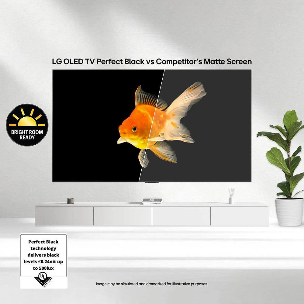 Certified by UL as Glare Free you can be confident your LG OLED TV performs great no matter the room or the lighting. With LG OLED you still experience perfect black that delivers stunning picture other brands just can't match.