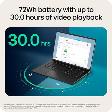 Powered by a 72Wh high-capacity battery offering up to 30 hours of video playback and equipped with our AI Smart Assistant, gram analyzes user patterns to optimize battery efficiency. Boost your productivity and enjoy uninterrupted play.