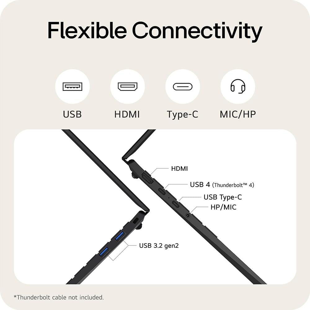 - Thunderbolt 4 | USB 3.2 Gen 2 | HDMI