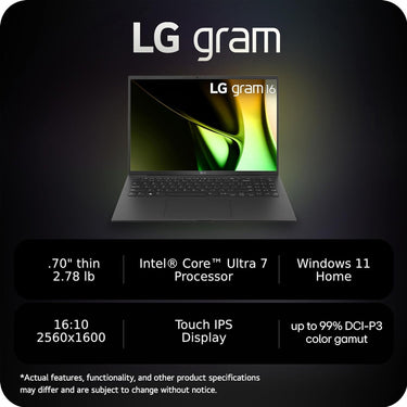 LG gram 16-inch Lightweight Laptop, Intel Evo Edition, 16GB RAM, 2TB SSD, Black