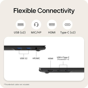 - Thunderbolt 4 | USB 3.2 Gen 2 | HDMI