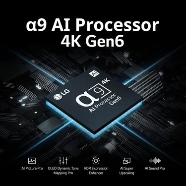 LG OLED’s exclusive α9 processor use AI to detect what you're watching and automatically sharpen and upscale the picture quality to 4K resolution and virtual surround sound.