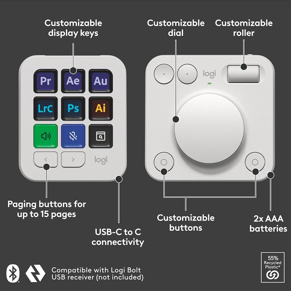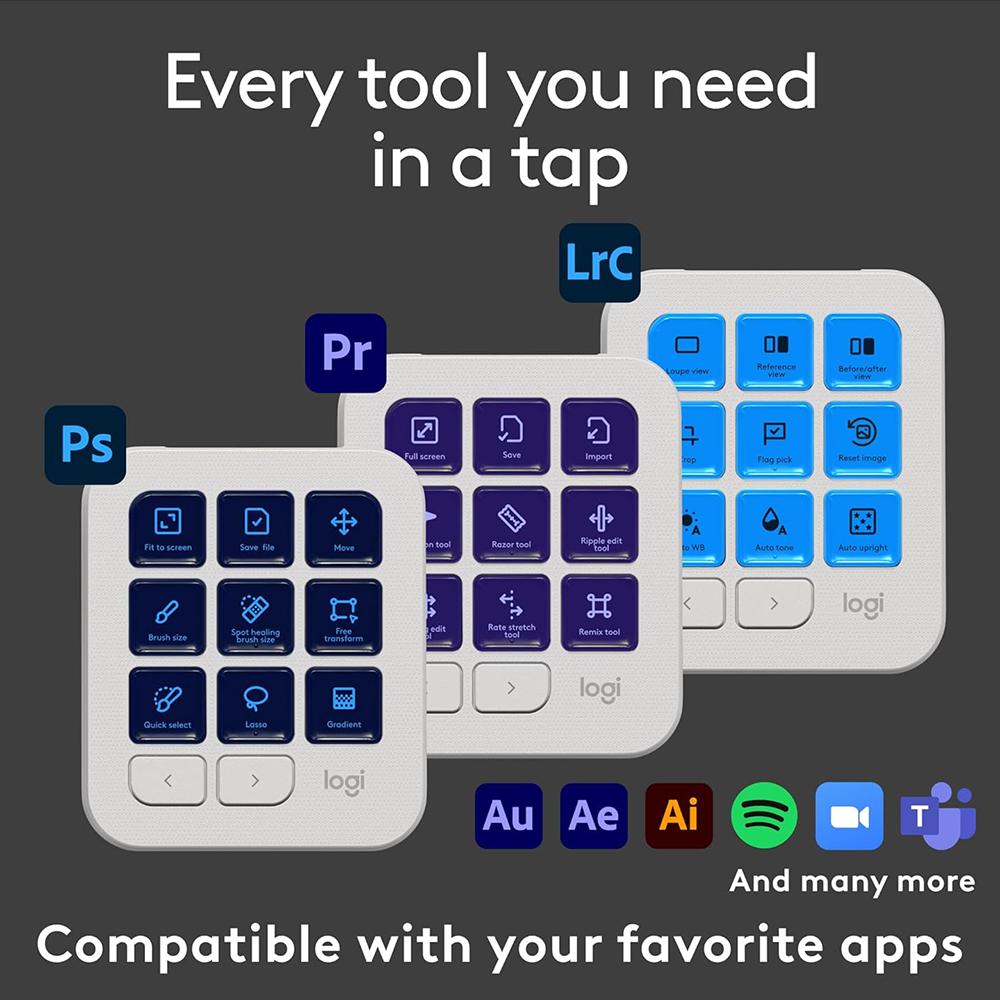 MX Creative Keypad gives you quick access to all the tools; shortcuts; and actions you need from your favorite applications with recommended profiles that let you get started right away on LCD display keys; or fully customize it to fit your own workflow and style.