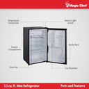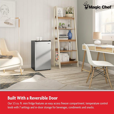 Magic Chef MCBR350S2 3.5 Cu. Ft. Mini Refrigerator with Freezer, Stainless Steel - Open Box