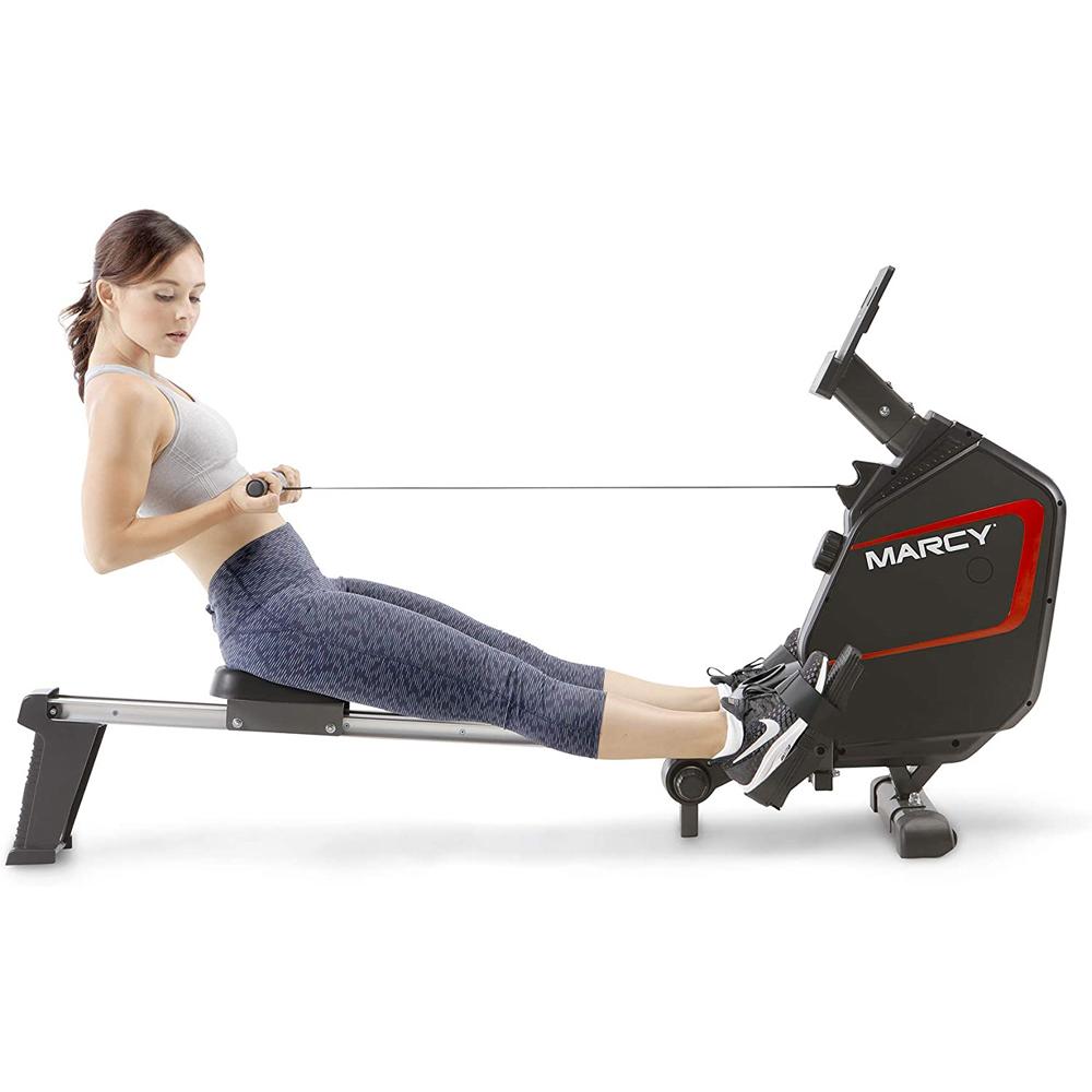 The Marcy Foldable Regenerating Rower brings home the ability to row in a slim yet durable and sleek design. You get the full body workout of rowing without the mess and hassle of getting in the water. This rowing machine comes with an adjustable tension knob that allows you to turn the resistance up or down to customize your training according to your fitness needs.