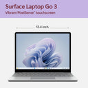 Surface Laptop Go 3 is the next generation of the sleek and portable Surface Laptop Go, our premium and most affordable Surface Laptop. Now with faster performance and more RAM and storage options, Surface Laptop Go 3 is a touchscreen laptop with allday battery and an incredible typing experience, designed for young professionals, students, casual creators, and entertainment seekers. At just under 2.5 lb and with up to 15 hours of battery, Surface Laptop Go 3 features an ultraportable design to help you breeze through work and play from anywhere. Get it all done with the performance you need, and stand apart from the crowd with a sleek design in stylish colors. It’s ultra-portable at under 2.5 pounds with a vibrant 12.4" touchscreen for work or play, wherever you are.
