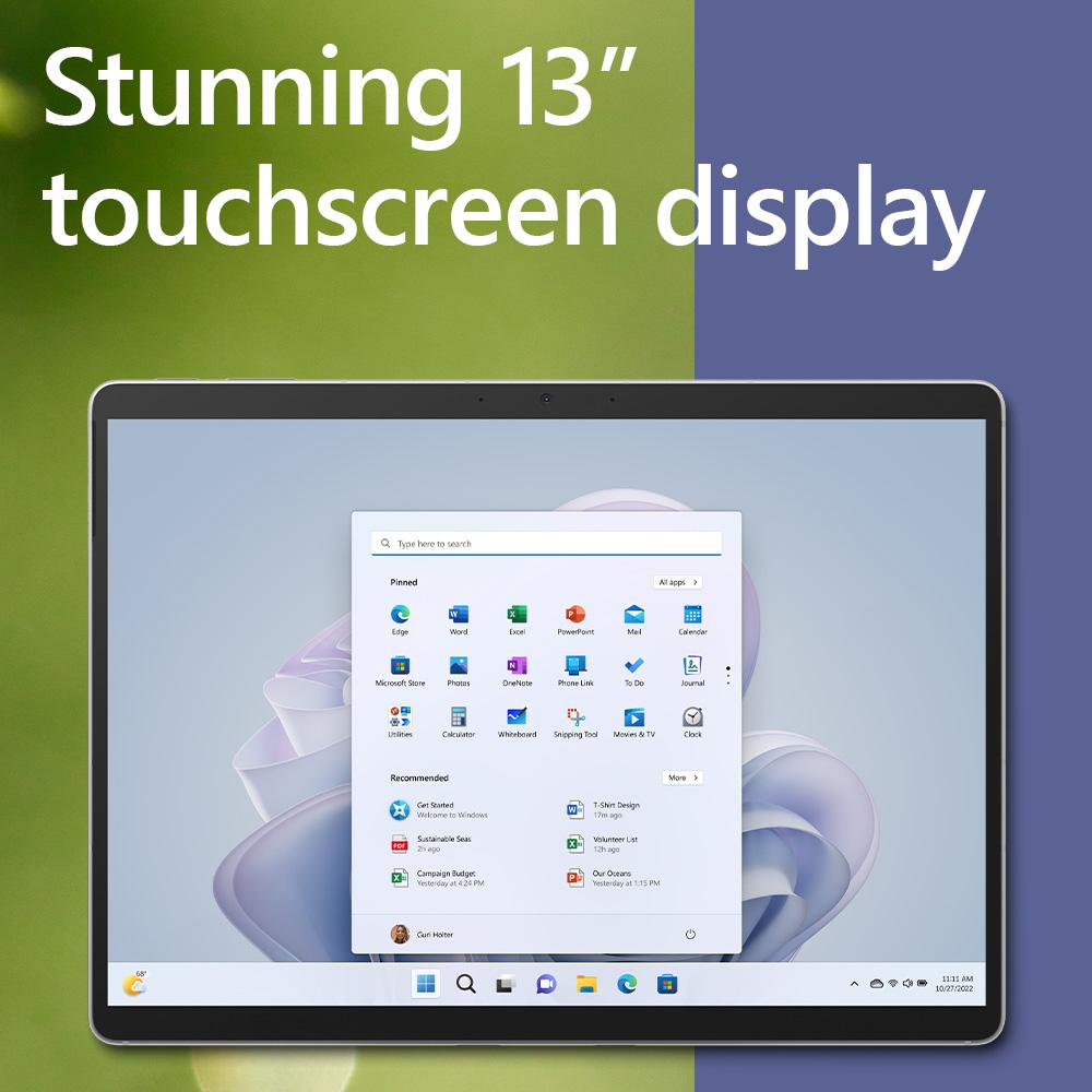 - Virtually edge-to-edge 13" PixelSense touchscreen designed for pen and Windows 11