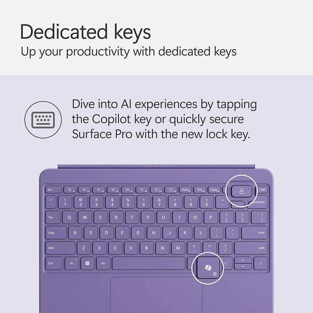 Surface Pro 12-inch Keyboard: Full-sized backlit keyboard with dedicated special keys.