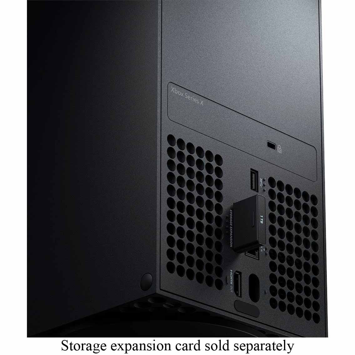 The all-new XBOX SERIES XTHE FASTEST, MOST POWERFUL XBOX EVERPOWER YOUR DREAMSOPTIMIZED FOR SERIES X|SGames built with the Xbox Series X|S development kit showcase significantly reduced load times and stunning visuals at up to 120FPS.GET IT ONCEWith Smart Delivery, you can buy a supported game once and always have the best available version for whatever console you play on.GAME ONFrom future adventures, to current obsessions, to classic titles, thousands of favorites across four generations of Xbox look and play best on Xbox Series X.12 TFLOPS OF POWERThe 12 teraflops of processing power housed in the system on a chip (SOC) work with AMDs Zen 2 and RDNA 2 architectures to result in worlds that demand a closer look.LOOKS BETTER. PLAYS BETTER.Equipped with AMDs Zen 2 and RDNA 2 architectures, DirectX ray tracing delivers true-to-life lighting, shadows, and accurate reflections to create dynamic, living worlds.LISTEN, YOU'RE BEING SURROUNDED.3D Spatial Sound is the next evolution in audio technology, using advanced algorithms to create immersive lifelike worlds that put you at the center of your experience.TRUE 4K GAMINGThe Xbox Series X delivers sensationally smooth frame rates of up to 120FPS with the visual pop of HDR. Immerse yourself with sharper characters, brighter worlds, and impossible details with true-to-life 4K.From original classics like Halo: Combat Evolved to future favorites like Halo Infinite, every title looks and plays best on the Xbox Series X.ENGINEERED FOR SPEEDTogether, the new system on a chip (SOC) and the Xbox Velocity Architecture put speed at your fingertips, and the 1TB custom SSD & CPU put the wheel in your hands, so you can go from 0-60 in up to 120FPS.Faster load times. Sip quick. Games load significantly faster with the custom SSD in the Xbox Series X.Change the game. With Quick Resume, you can seamlessly switch between multiple different titles and resume instantly from where you left off.Xbox Series X is compatible with your Xbox One gaming accessories and brings faster response time than ever before.BACKWARD COMPATIBLE WITH THOUSANDS OF GAMESGet ready for faster load times, higher resolution, more stable frame rates, and better input latency on thousands of Xbox One, Xbox 360, and Original Xbox games.DESIGNED FROM THE INSIDE OUTThe sleek monolithic design of Xbox Series X is the result of combining hardware and software innovations with intentional engineering to achieve the zenith of speed and performance.AIR-FLOW CHANNELSThe Xbox Parallel Cooling Architecture is built with three air flow channels that evenly distribute the temperatures generated by the advanced internal components, keeping the console cool and quiet.SPLIT MOTHERBOARDA split motherboard keeps the consoles internals evenly temperature controlled allowing for an even higher output of power.HEAT-SINKA heat-sink chassis is a unique, non-electronic component that merges parallel cooling with unique design to increase the reliability of performance.VAPOR CHAMBERThe vapor chamber in the Xbox Series X enables an even spread of temperatures within the core.WHISPER-QUIET FANA vertical airflow system keeps the console running smoothly and cooling quietly.TECH SPECSPROCESSORCPU.8X Cores @ 3.8 GHz (3.66 GHz w/SMT) Custom Zen 2 CPUGPU.12 TFLOPS, 52 CUs @1.825 GHz Custom RDNA2 GPUSOC Die Size.360.45 mmProcess.7nm EnhancedMEMORY & STORAGEMemory.16GB GDDR6 w/320 bit-wide busMemory Bandwidth.10GB @ 560 GB/s, 6GB @ 336 GB/s.Internal Storage.1TB Custom NVME SSDI/O Throughput.2.4 GB/s (Raw), 4.8 GB/s (Compressed, with custom hardware decompression block)Expandable Storage.Support for 1TB Seagate Expansion Card for Xbox Series X|S matches internal storage exactly (sold separately). Support for USB 3.1 external HDD (sold separately).VIDEO CAPABILITIESGaming Resolution.True4KHigh Dynamic Range.Up to 8K HDROptical Drive.4K UHD Blu-RayPerformance Target.Up to 120 FPSHDMI Features.Auto Low Latency Mode. HDMI Variable Refresh Rate. AMD FreeSync.SOUND CAPABILITIESDolby Digital 5.1DTS 5.1Dolby TrueHD with AtmosUp to 7.1 L-PCMPORTS & CONNECTIVITYHDMI.1x HDMI 2.1 portUSB.3x USB 3.1 Gen 1 portsWireless.802.11ac dual bandEthernet.802.3 10/100/1000Accessories radio.Dedicated dual band Xbox Wireless radio.DESIGN