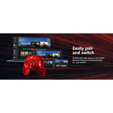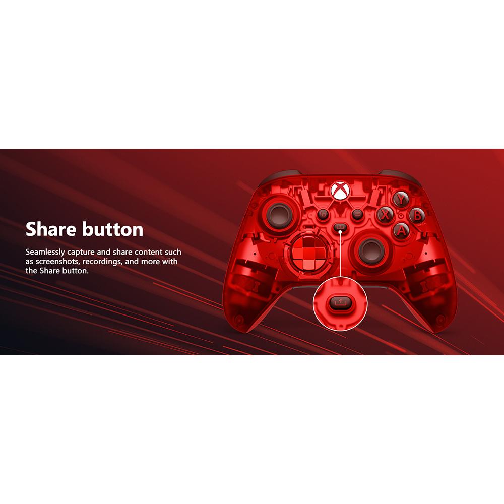 Reveal the mysteries within the Xbox Wireless Controller - Pulse Cipher Special Edition, featuring a transparent red design, silver interior, metallic features, and more. Look through the red transparent top case and side caps to see metallic, silver interior parts shine through from inside. Hold on to the action with rubberized, red grips on the back-case. Stay on target with red metallic triggers and a matching metallic D-pad. Connect using the USB-C port for direct plug and play to console and PC. Support for AA batteries is included on the rear. Get up to 40 hours of battery life. Seamlessly capture and share content such as screenshots, recordings, and more with the dedicated Share button. Plug in any compatible headset with the 3.5mm audio jack. Use the Xbox Accessories app to remap buttons and create custom controller profiles for your favorite games. Quickly pair with, play on, and switch between devices including console, PC, and mobile.