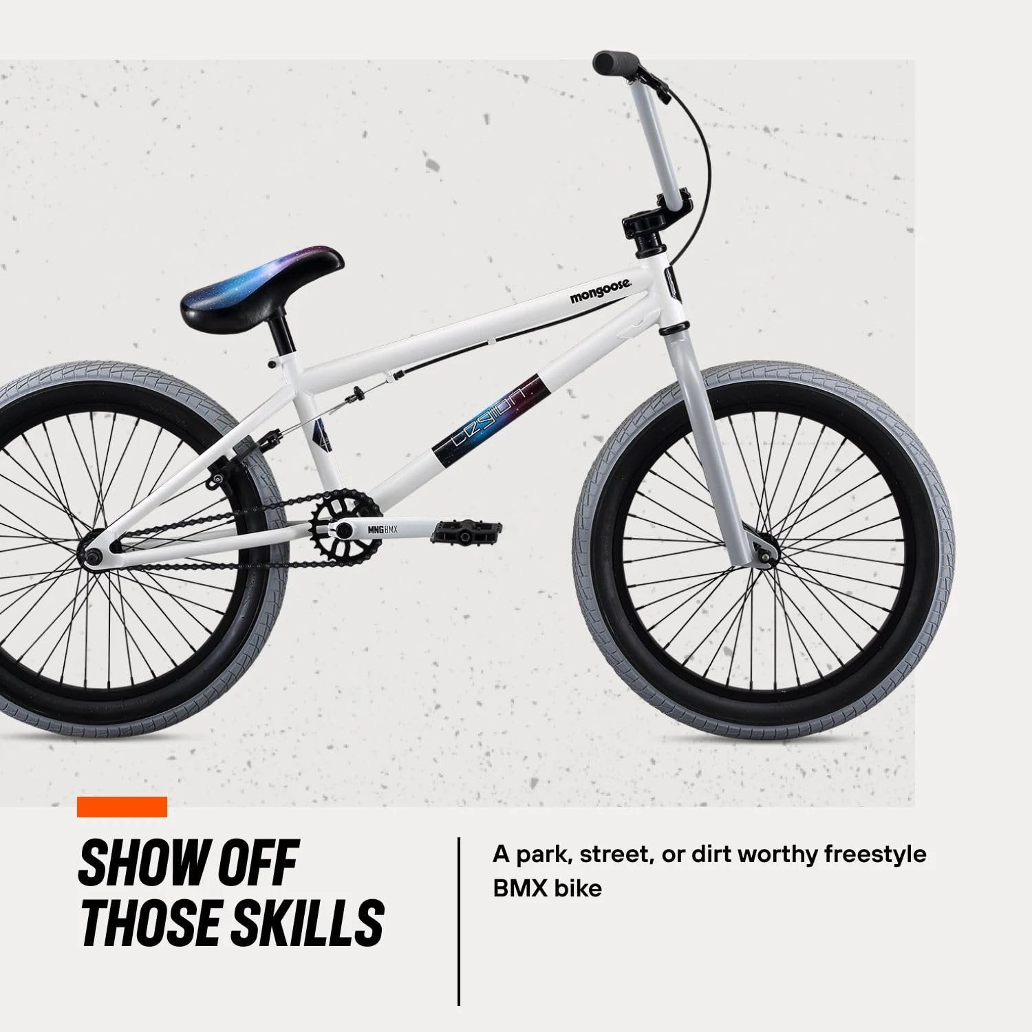 Mongoose Legion Kids Freestyle BMX Bike, Intermediate Rider, 20-Inch Wheels, White