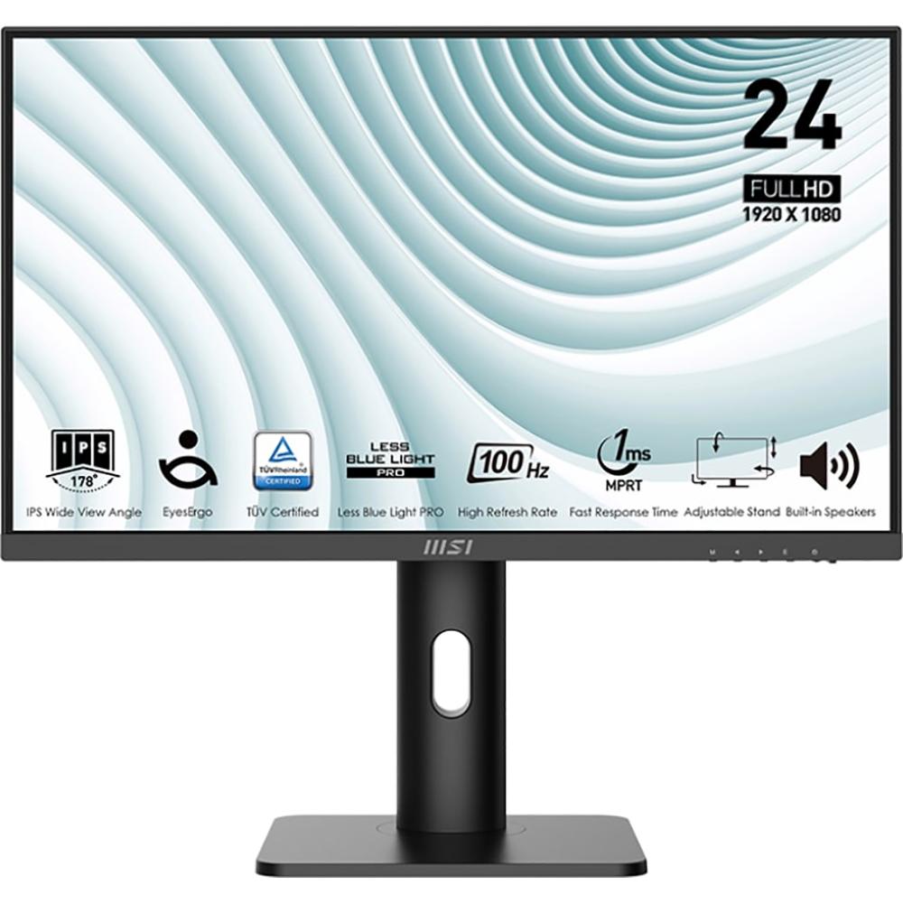 - MSI PRO MP243XP 24-inch IPS 1920 x 1080 (FHD) Computer Monitor, 100Hz, Adaptive-Synch, HDMI, DisplayPort, VESA Mountable, Tilt, Height Adjustable, Speaker, 1ms, Black