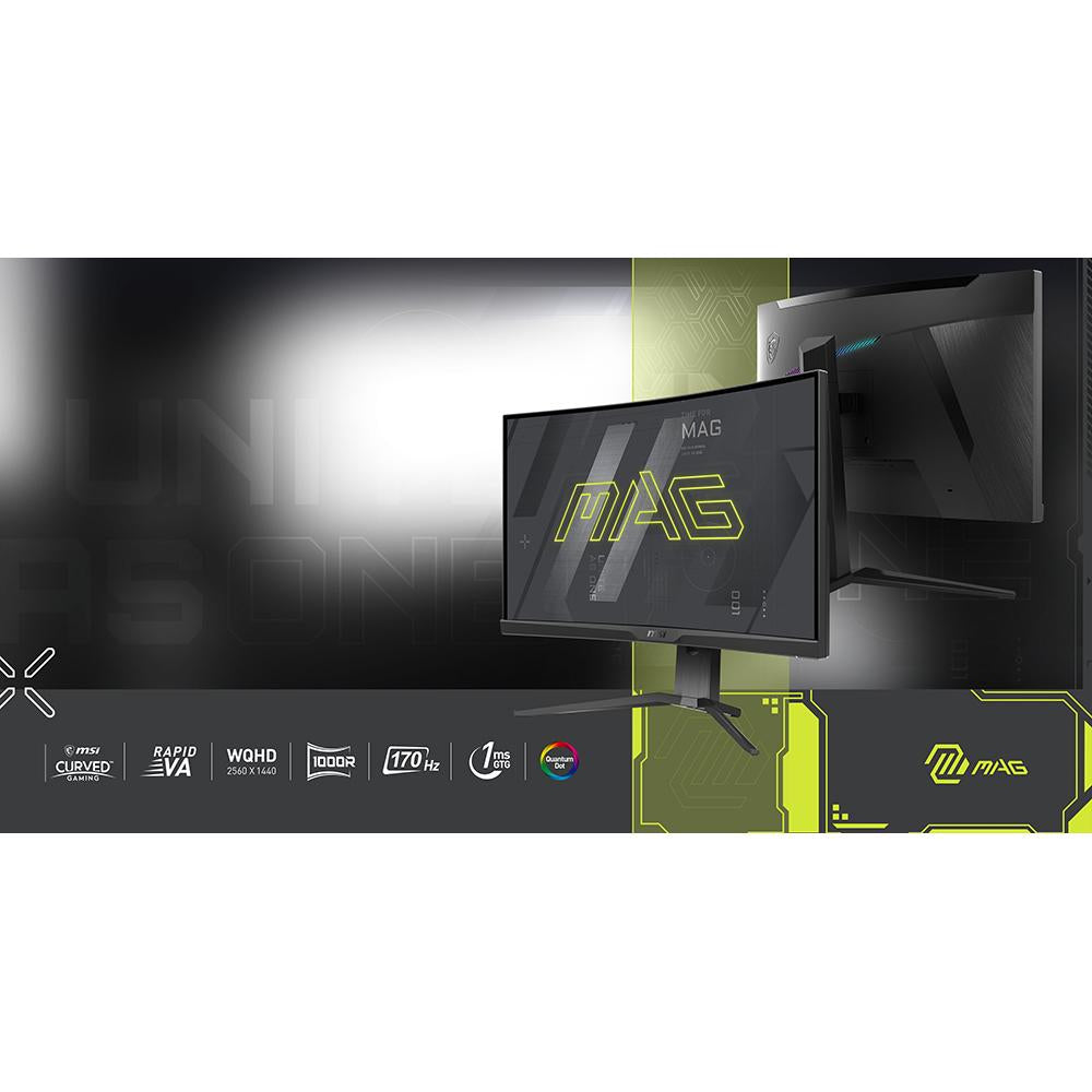 MAG275CQRF QD Curved Gaming Monitor; Metallic Black - RGB; 27" Rapid VA with Quantum Dot Panel; 2560x1440 (QHD); Free Sync Premium; HDR Ready; non-Glare with narrow bezel; 170Hz Refresh Rate; Tilt and Height adjustable
