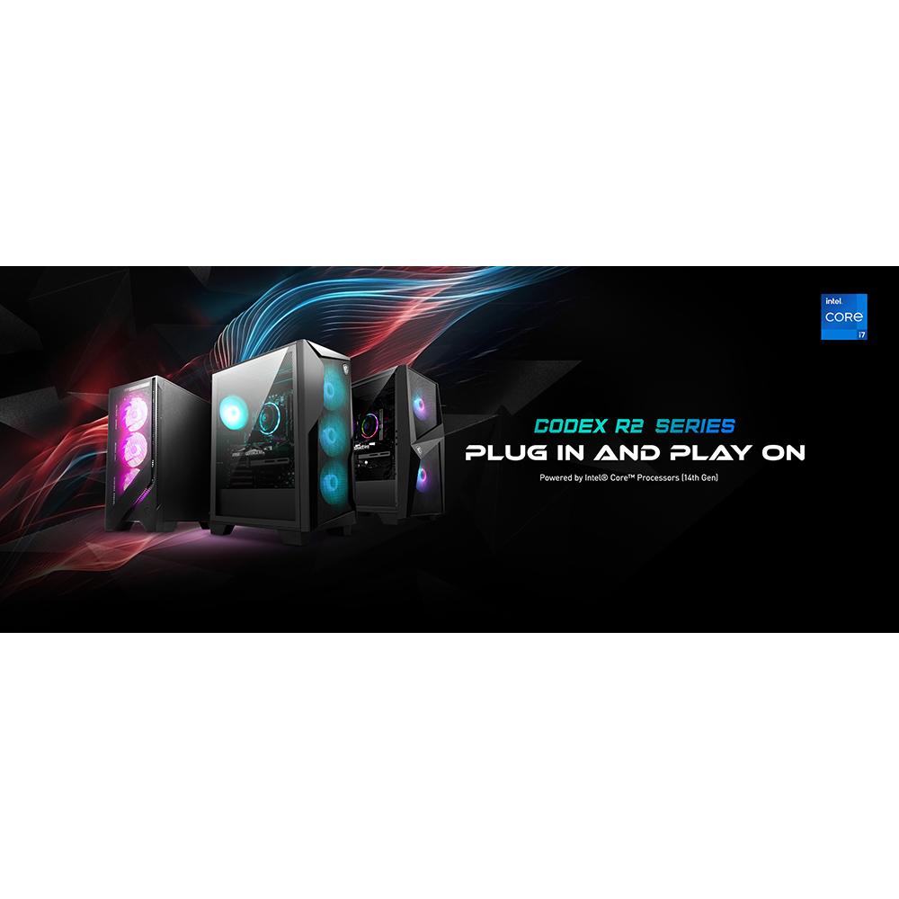 - MSI Codex R2 (Tower) Gaming Desktop, Intel Core i7-14700F, GeForce RTX 4070 Super, 32GB Memory (16GB x 2), 1TB SSD, USB Type-C, VR-Ready, Windows 11 Pro