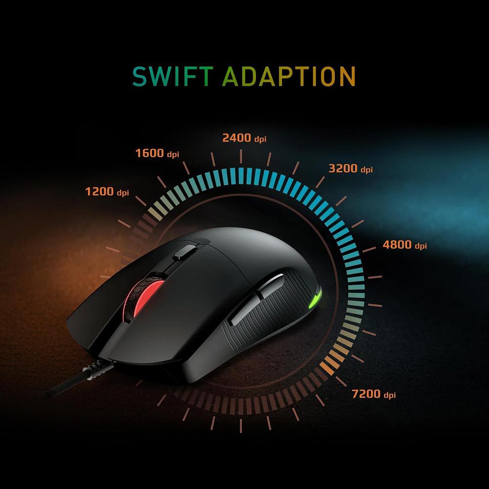 Keyboard: Hot-swappable Mechanical Red switches 60M+ lifespan Supports, 6+N key rollover Over 20 RGB lighting effects Magnetic Top cover with 2 different styles. Mouse: Up to 7200 dpi adjustment Switches with 20M+ lifespan Dragon LED and side RGB lighting effects.